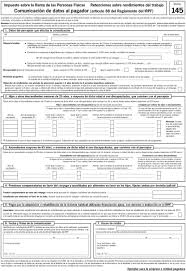 Lo ms comn es rellenar el modelo 145 de Hacienda cuando se empieza a trabajar en una nueva empresa o cuando hay algn cambio en la situacin personal o familiar del trabajador. Conoce cmo rellenar el Formulario 145 correctamente Para hacer cualquier trmite se necesita una planilla que es realizada por la entidad correspondiente pero de todos ellos en esta oportunidad solo se va habla del formulario 145. Este modelo es relativamente fcil de presentar y posee 7 secciones que te van a servir para notificar por completo tu situacin personal y familiar.