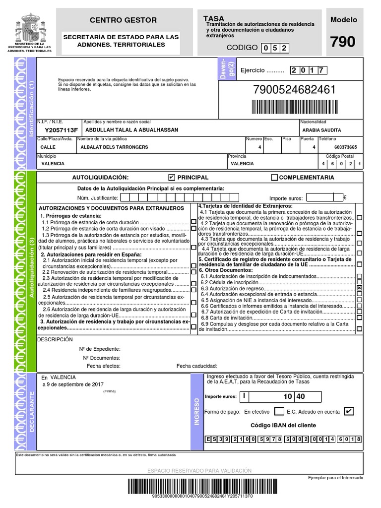 Generar el Modelo 790 de Tasas de Telecomunicaciones y realizar el pago. Tramitacin de autorizaciones de residencia y otra documentacin a ciudadanos extranjeros. It is not legal advice.