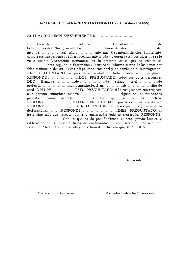 Modelo Acta De Declaracion Testimonial Pdf